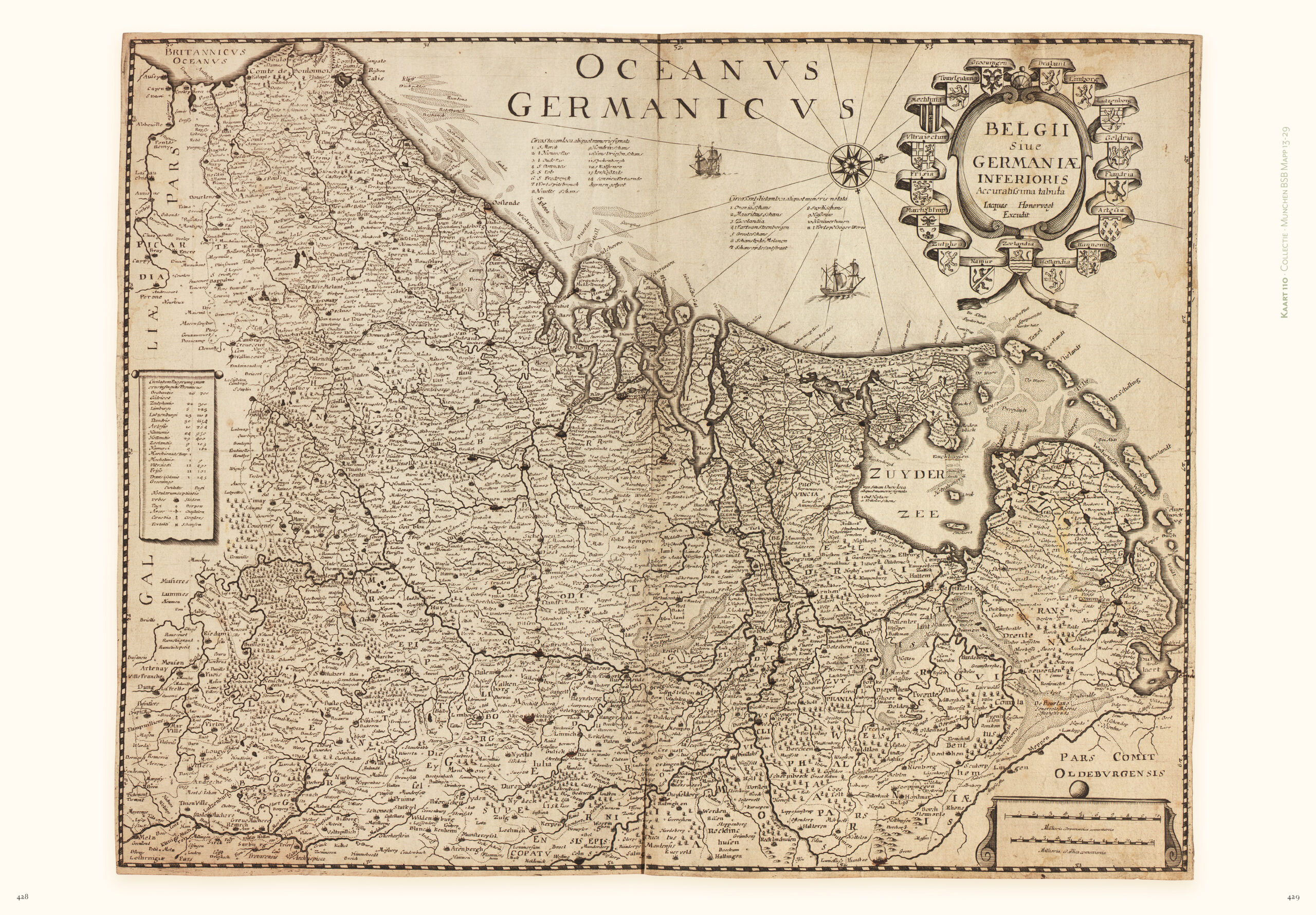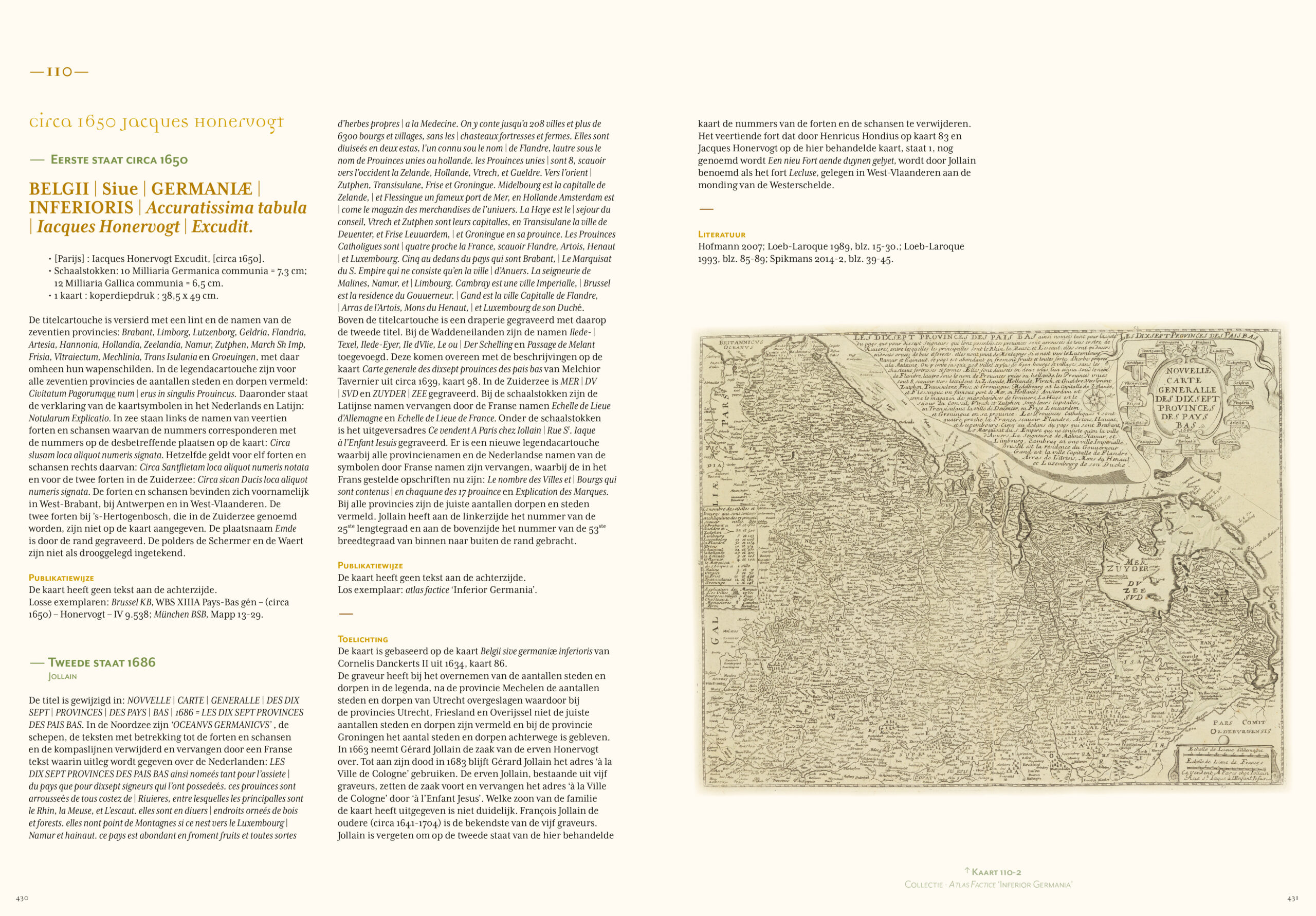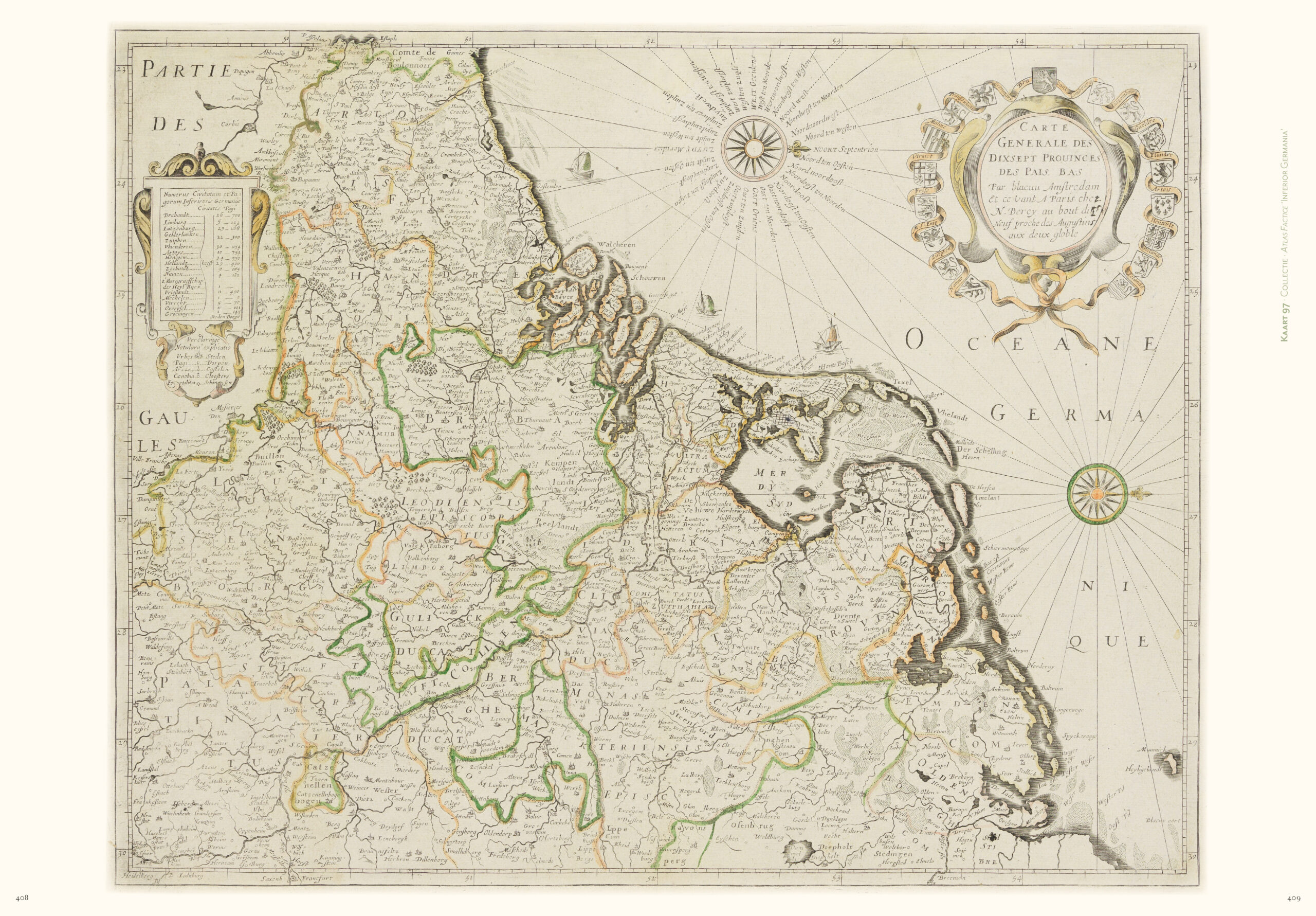 Samensteller, auteur en uitgever – Hans Spikmans: “Deze tijd, met zijn Bourgondische en Habsburgse perioden, heeft zeer instructieve, en met prachtige cartouches uitbundig geïllustreerde wandkaarten en foliokaarten opgeleverd, waarvan vele in kleur. Deze cartografie vond ook een markt elders in Europa.”